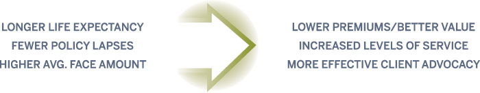 Our association with M Financial provides many benefits to our clients including: institutional pricing on M Financial products, the option to choose multiple carriers through an “open architecture” model, and less intrusive underwriting requirements. Through M Financial we gain direct access to insurance carriers to develop product designs, pricing, and performance specifically intended for, and limited to, the affluent risk class. This population group enjoys longer life expectancy, lower lapse rates, and on average requires higher “face amounts” on policies. This results in lower premiums, increased service levels, and more effective client advocacy for our customers.